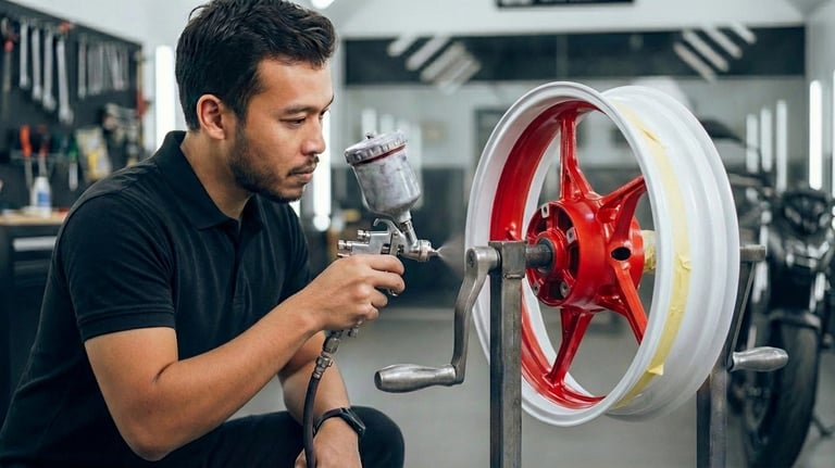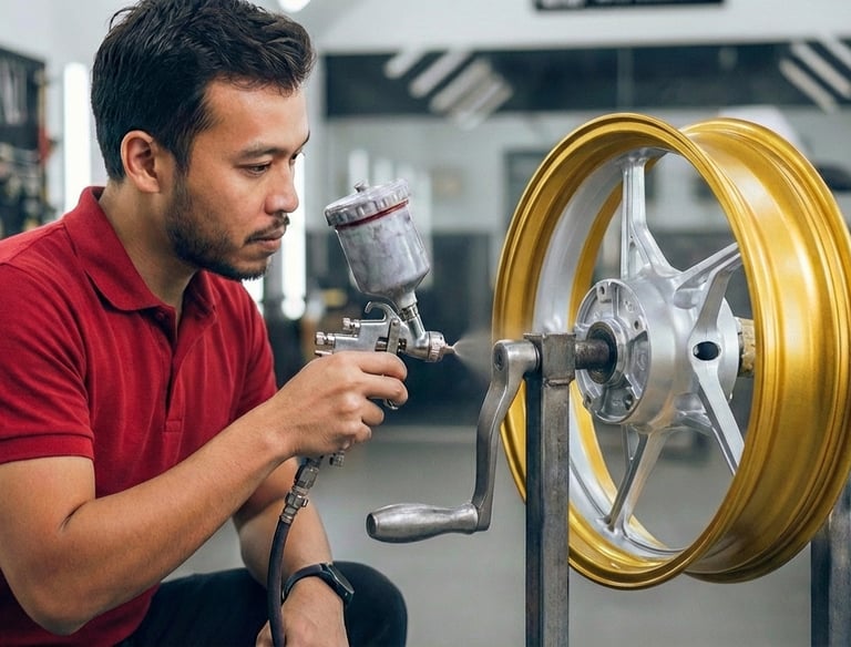 Spesialis cat velg, body, dan rangka motor dengan hasil rapi dan tahan lama.