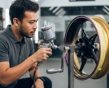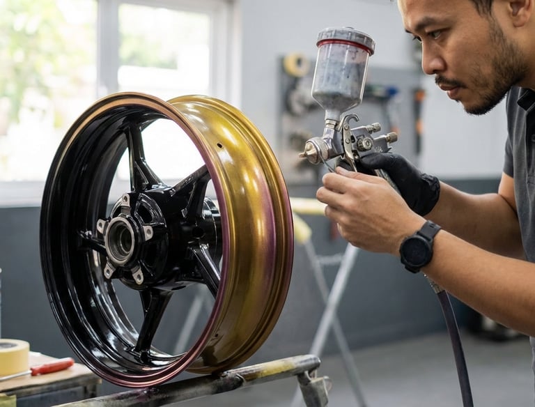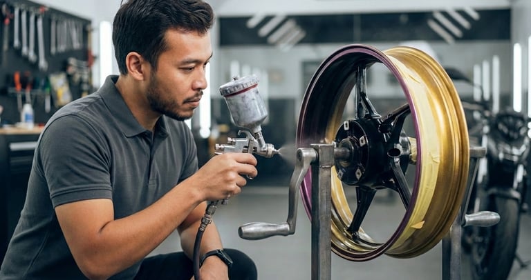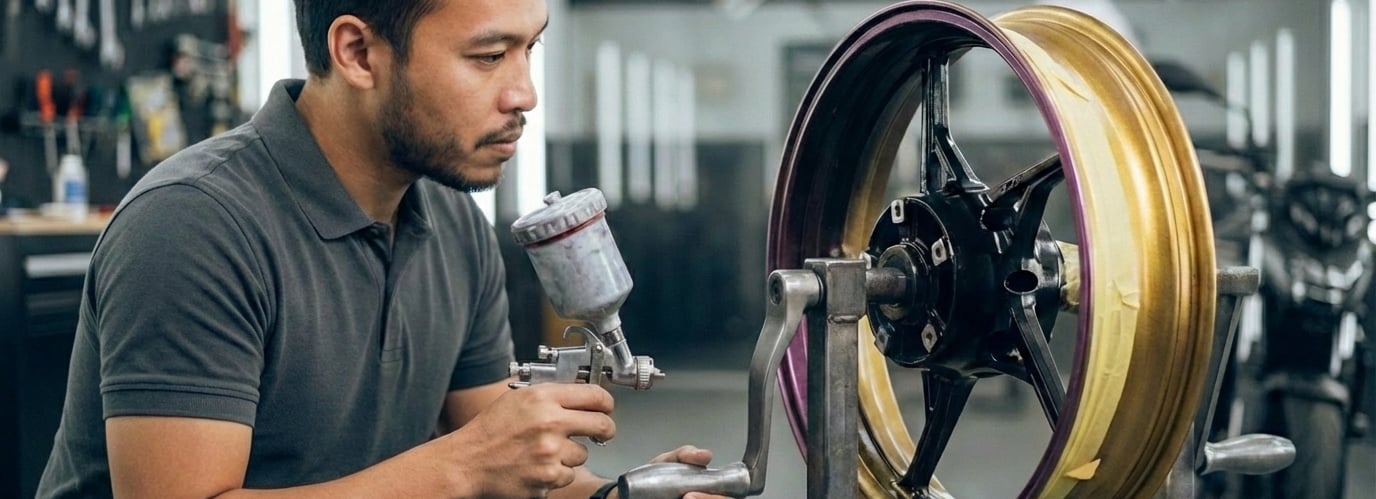 Warna tajam dan tahan lama untuk velg motor harian maupun racing.