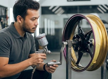 Kami ahli dalam cat velg, body, dan rangka motor dengan hasil rapi dan warna tajam.