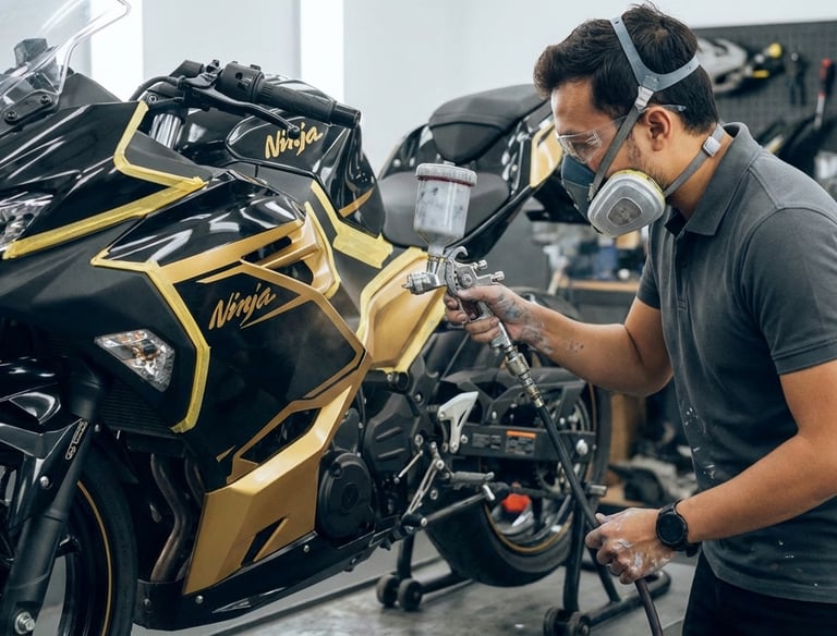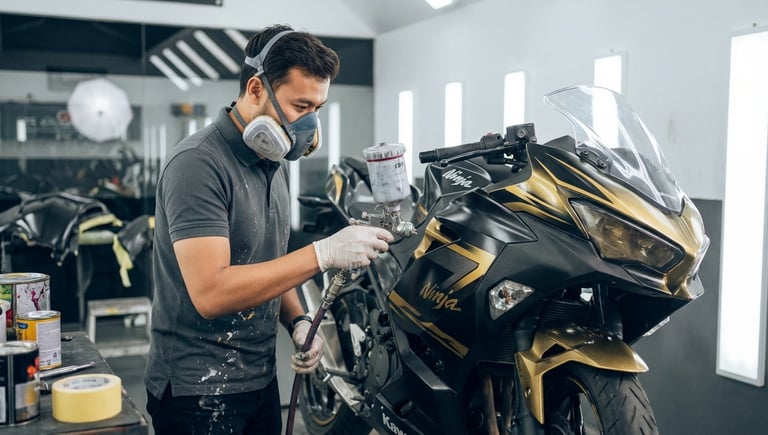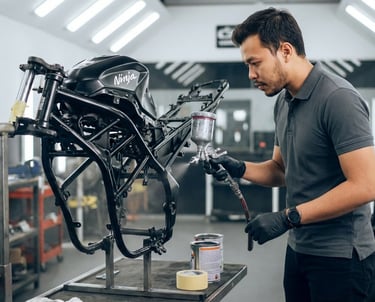 Kami memberikan sentuhan cat rapi pada body motor Anda, membuat tampilannya lebih garang dan berkelas, cocok untuk motor harian maupun racing.