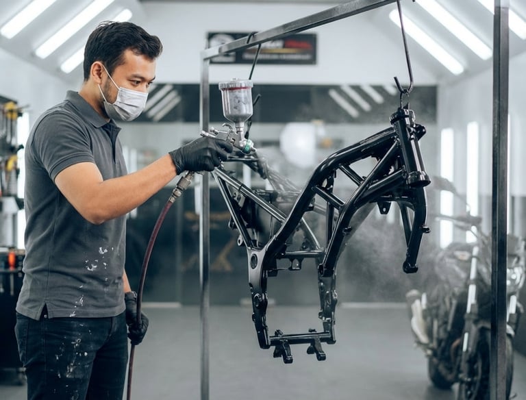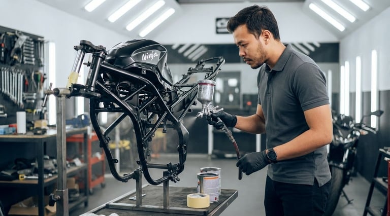 Rangka motor dicat dengan detail rapi dan ketahanan maksimal.